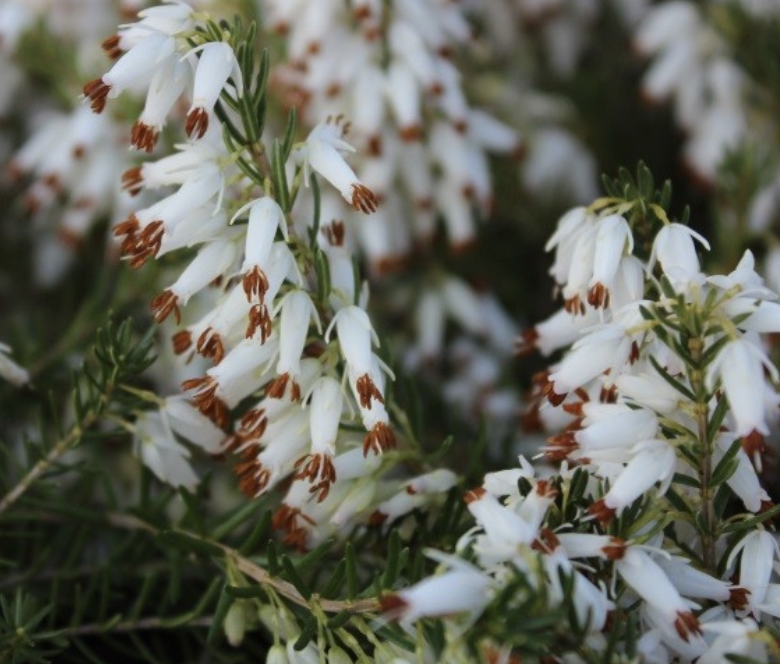A robust, slightly trailing evergreen shrub that grows to around 20cm in height and 45cm wide. It is covered in dense spires of white flowers from winter to mid spring.
