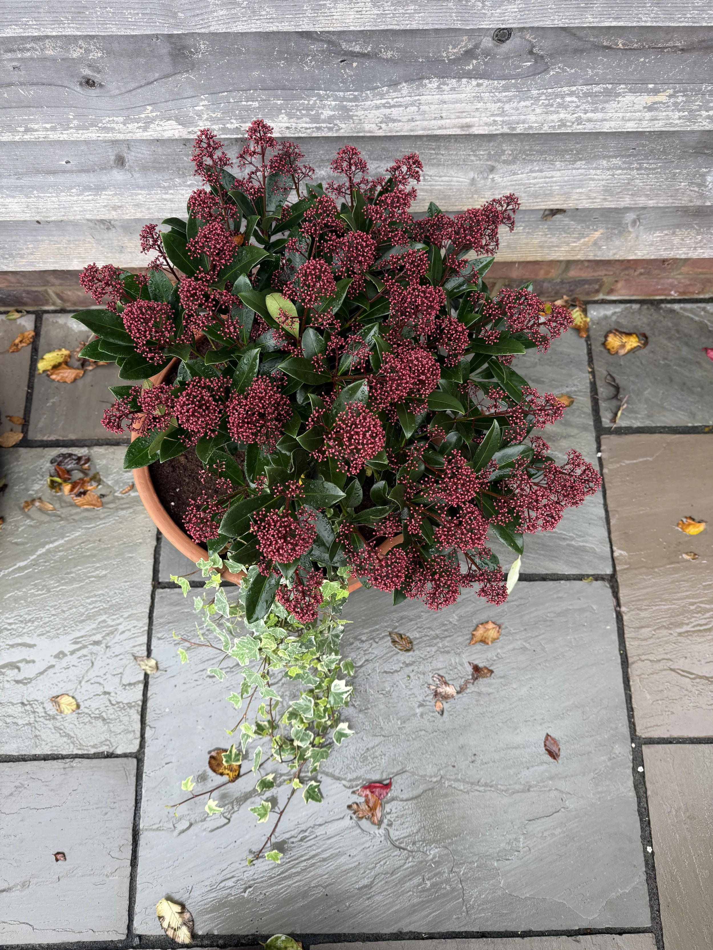A tough, dome-shaped evergreen shrub that looks good all year round. It can grow to around 5 metres tall and really shines in winter, when it’s covered in clusters of pink buds that open into pretty white flowers in spring.Later in the year, it produces bright red berries that add a gorgeous pop of colour through autumn and winter.